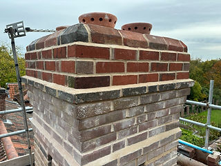 Our team have recently restored this chimney back to its finer glory. Previous repairs were done with cement, this was raked out and repointed with lime, structural heli bars were installed to make sure no further movement occurs.